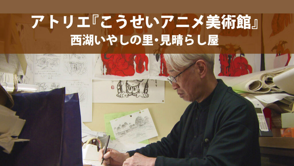 前田こうせいのアトリエ『こうせいアニメ美術館』は富士五湖のひとつ、西湖の北西に位置する西湖いやしの里根場のなかの施設です。
